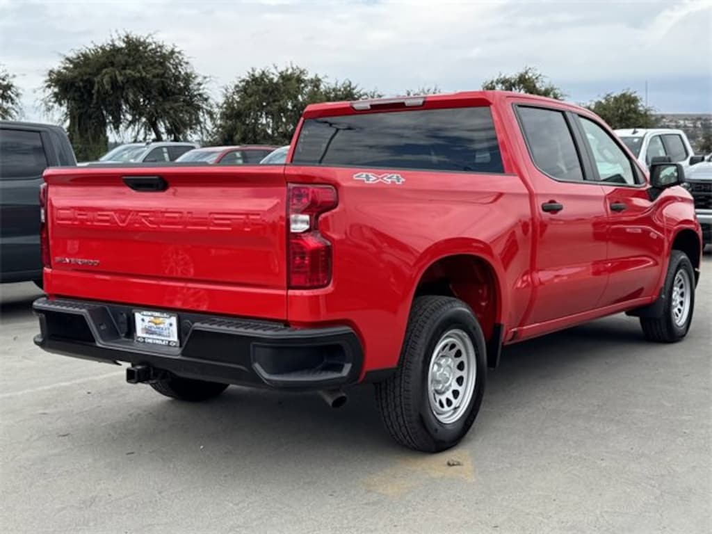 Red 2025 Chevrolet Silverado 1500 WT 4WD 8-Speed Automatic 2.7L I4 Turbocharged DOHC 16V LEV3-SULEV30 310hp 8-Speed Automatic, 4WD, Jet Black Vinyl.